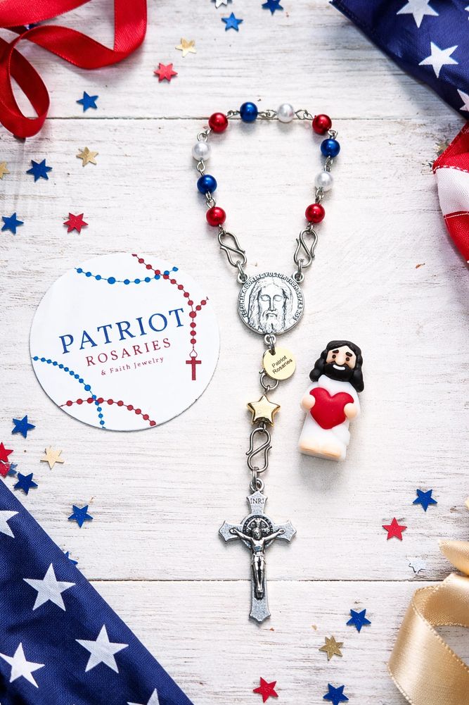 At Patriot Rosaries, we create handcrafted faith jewelry and rosaries to honor God and country. Each month, our goal is to donate 100+ rosaies to veterans, hospitals, the homeless, and those in need - sharing prayer, hope, and encouragement acros our nation. We believe faith is the foundation of freedom, and through our rosaries and jewelry, we aim to stengthen hearts, uplift communities, and support those who serve our country.